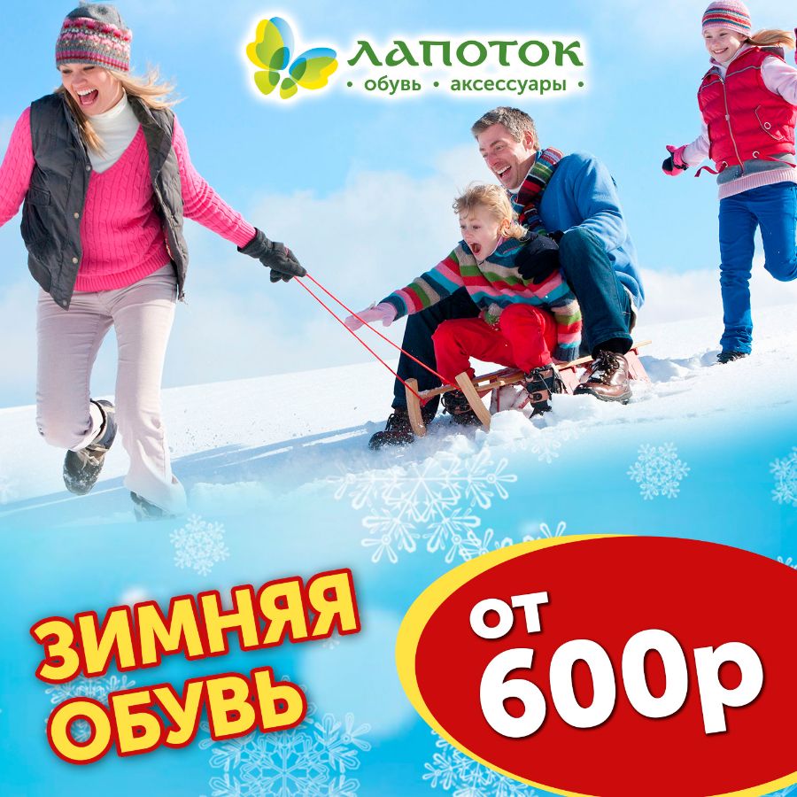Мороз уже за окном! Пора утепляться! В сети розничных магазинов «Лапоток» уникальные эксклюзивные цены на зимнюю обувь от 600 рублей! Угги 600 рублей, дутики 800 рублей, ботинки 1000 рублей. Торопитесь. Количество товара ограничено!