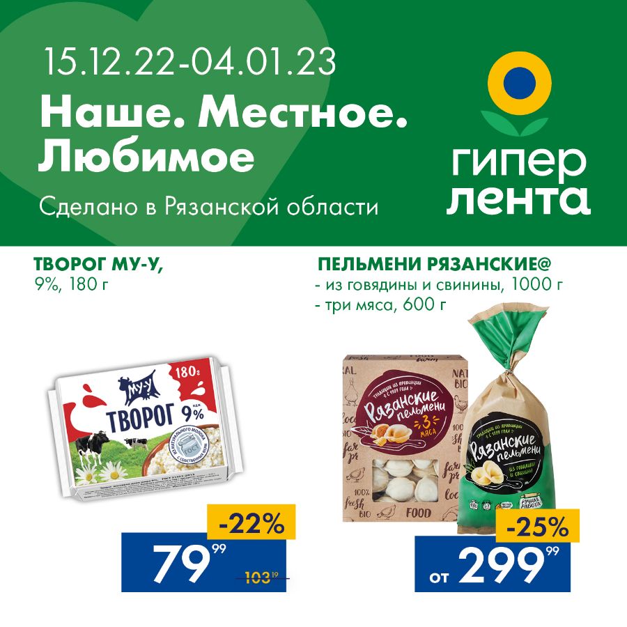 Пробуйте своё, родное! «Лента» приглашает за вкусными покупками и новыми открытиями. До 4 января в гипермаркетах «Лента» Рязани вас ждут скидки на выделенный ассортимент товаров местных производителей.