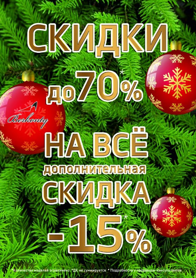 С 23.11.2022- 08.01.2023 гг. Супер-предложение! Дополнительная скидка 15% на ВСЁ ! Только в праздничные дни у вас есть шанс приобрести обувь по выгодной цене с хорошей скидкой!!!